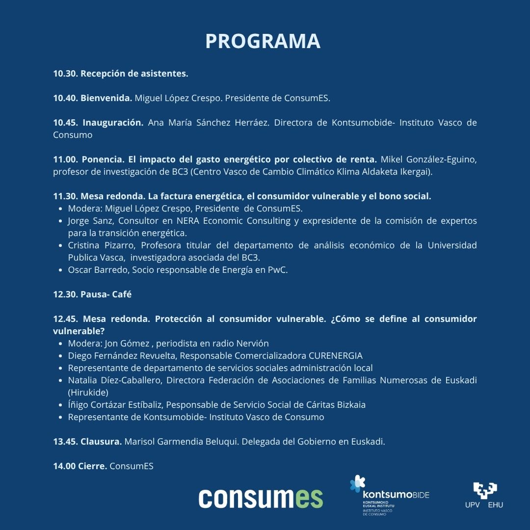 El Salón de grados Sarriko de la UPV/EHU, acoge la Jornada "Justicia Energética: Recursos y herramientas", organizada por ConsumES en colaboración con Kontsumobide/Instituto Vasco de Consumo, abordará uno de los desafíos socioeconómicos más importantes en la actualidad: la pobreza energética y la protección de los consumidores vulnerables.